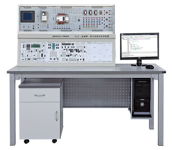 This training device combines PLC, VFD and SCM together. Several operation and application trainings can be achieved, such as programmable controller, frequency conversion, SCM, electrical wiring PLC control, machine electric PLC training and so on