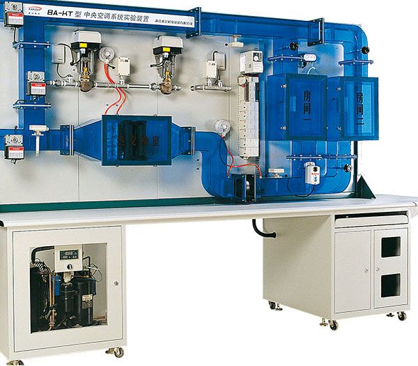 系統(tǒng)采用了工業(yè)化設計,主要的傳感器、執(zhí)行器采用了Honeywell公司的產(chǎn)品,真實再現(xiàn)了實際系統(tǒng)各環(huán)節(jié)的內(nèi)容,系統(tǒng)的風道結(jié)構(gòu)采用透明的有機玻璃設計。由于在各部件中應用了模塊化設計,易于組成各類空調(diào)系統(tǒng),豐富了實驗內(nèi)容。