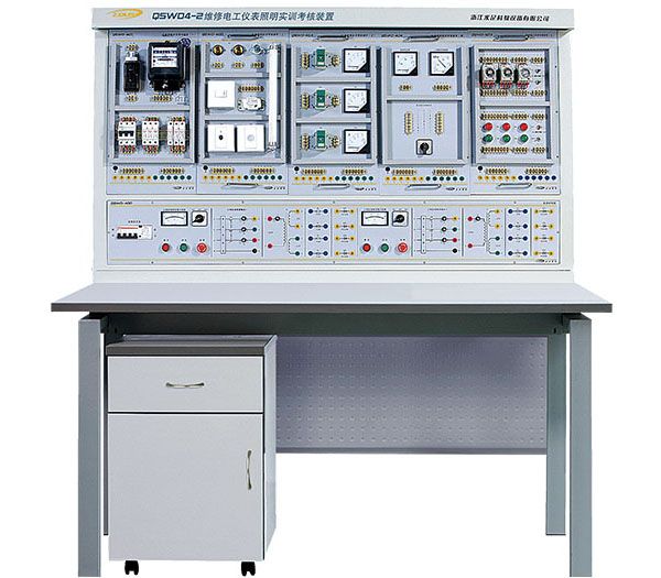 該裝置由實訓桌、控制屛、掛箱等組成。以儀表及照明為主,它不僅能作為電工儀表和照明電路的操作實訓裝置。而且也可用于初、中級維修電工技能的考核。
