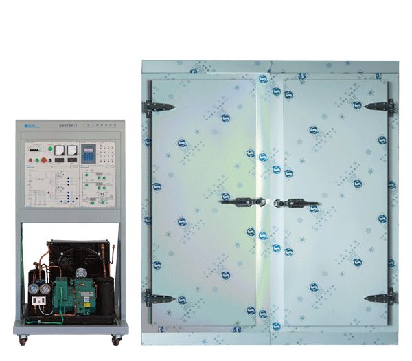 該制冷系統(tǒng)由真實(shí)冷庫(kù)的壓縮機(jī)組和控制器、冷風(fēng)機(jī)組、庫(kù)體和電氣控制線路構(gòu)成,完全是一個(gè)真實(shí)的冷庫(kù)的解剖。系統(tǒng)由三部分組成:1)電氣控制部分;2)壓縮機(jī)組部分;3)庫(kù)體部分,涵蓋了制冷專業(yè)中所涉及的安裝、管路設(shè)計(jì)、焊接技術(shù)、保壓、檢漏、抽真空、充注制冷劑、實(shí)訓(xùn)考核等。