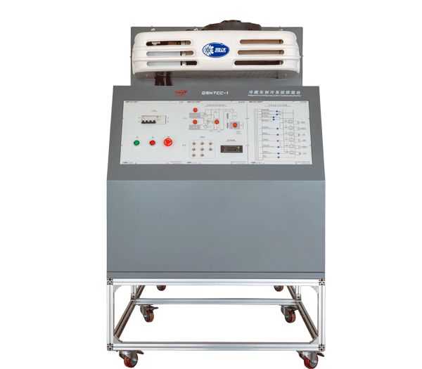 該裝置以冷藏車制冷系統(tǒng)為實(shí)訓(xùn)對(duì)象,采用專用冷藏車制冷機(jī)組,壓縮機(jī)由電動(dòng)機(jī)帶動(dòng),并配有油分離系統(tǒng),通過(guò)膨脹閥節(jié)流,經(jīng)蒸發(fā)器最終達(dá)到制冷效果,與真實(shí)的汽車空調(diào)相符,方便學(xué)生了解冷藏車的工作原理。采用示教板教學(xué),可以直觀地觀測(cè)到制冷系統(tǒng)各點(diǎn)工作參數(shù),提高學(xué)生對(duì)系統(tǒng)的分析和判斷能力。