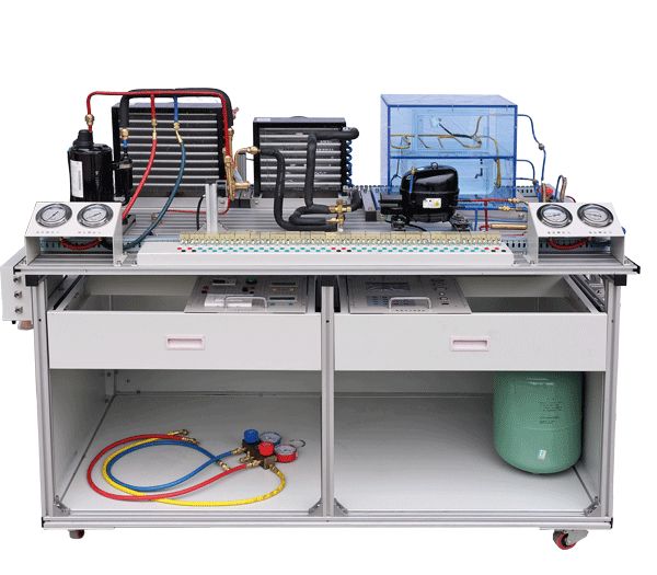 裝置根據(jù)制冷類行業(yè)中空調(diào)與冰箱維修技術的特點,針對空調(diào)和冰箱的電氣控制以及制冷系統(tǒng)的安裝與維修進行設計,全面展現(xiàn)制冷系統(tǒng)結構及制冷系統(tǒng)維修的全部過程,采用模塊化設計,電氣控制與制冷系統(tǒng)獨立分開,可以對相應的特征點進行測量,通過強化學生對空調(diào)冰箱系統(tǒng)管路的安裝、電氣接線、工況調(diào)試、故障診斷與維修等綜合職業(yè)能力,滿足實訓教學、實際工程訓練及職業(yè)技能競賽的需要。